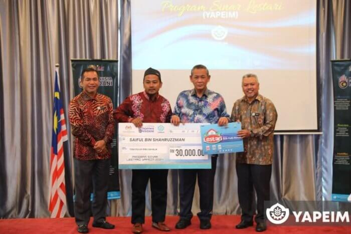 YAPEIM sebagai rakan strategik menerusi Program Sinar Lestari YAPEIM telah menyalurkan sejumlah RM220,000 kepada empat penerima manfaat, melibatkan dua projek bina baru dan dua projek baik pulih rumah. Penerima ialah Normasnira binti Yusof (RM80,000 – bina baru), A’ini binti Ab Hamid (RM80,000 – bina baru), Siti Nazeyrah binti Md Jamil (RM30,000 – baik pulih) dan Saiful bin Shaharuzzaman (RM30,000 – baik pulih).