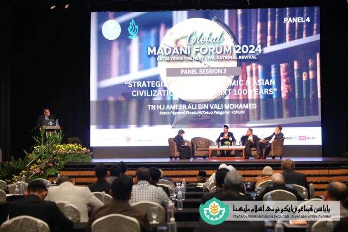Ketua Pegawai Eksekutif/Ketua Pengarah YaPEIM Tuan Haji Ameer Ali bin Vali Mohamed hari ini berpeluang berkongsi pandangan selaku panelis ketiga dalam Sidang 3 Global MADANI Forum 2024 yang membincangkan tajuk ‘Strategies To Revive Islamic & Asian Civilizations in The Next 100 Years’ di ibu negara.