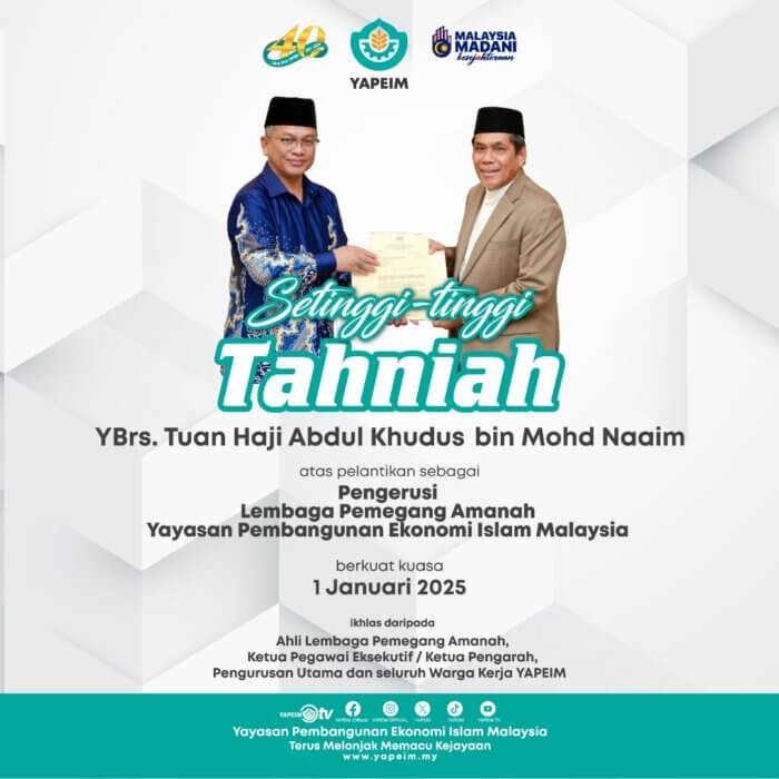 Kenyataan media oleh Tuan Ameer Ali bin Vali Mohamed, Ketua Pegawai Eksekutif/Ketua Pengarah mengenai pengumuman pelantikan pengerusi YAPEIM yang baharu.