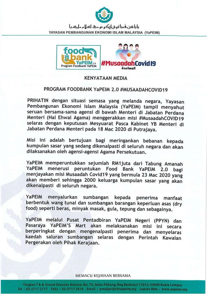 Kenyataan Media – Program Foodbank YaPEIM 2.0