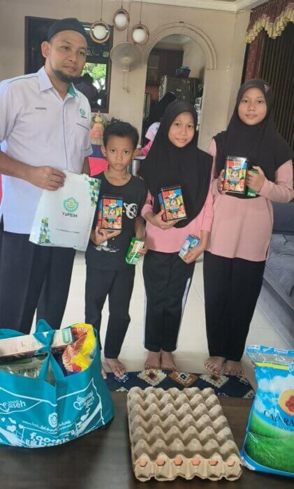 22 Januari 2025 – YAPEIM menyalurkan bantuan berjumlah RM7,200 kepada tiga orang anak yatim kematian bapa akibat kemalangan maut di bawah Program Sinar Kasih. Mereka akan menerima bantuan RM200 sebulan setiap seorang selama setahun.