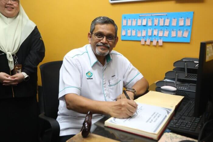Tuan Abdul Khudus turut ditemani Ketua Pegawai Eksekutif/Ketua Pengarah YAPEIM Tuan Ameer Ali bin Vali Mohamed, Pengerusi Koperasi YAPEIM Berhad Encik Muhamad Khairul Anuar bin Ibrahim dan Pengurus Besar Koperasi YAPEIM Berhad Encik Mohamad Fozi bin Tunggal.