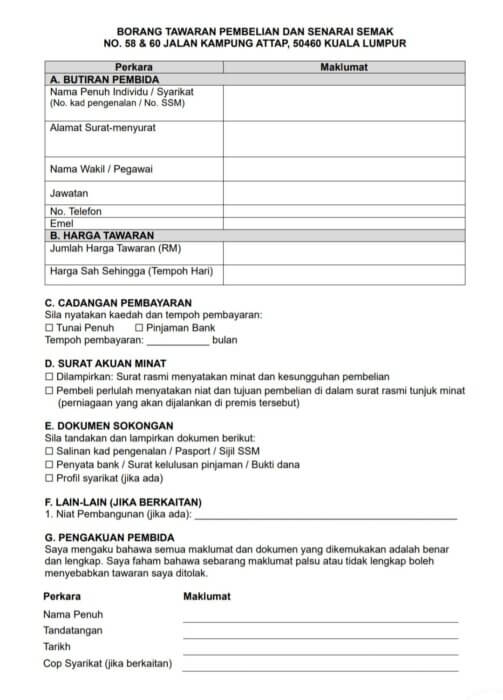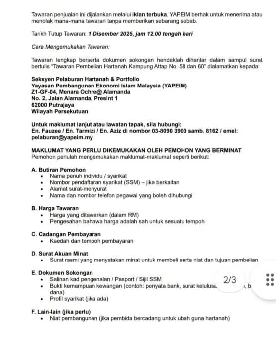 Pengiklanan Penjualan Hartanah YAPEIM (No. 58 & 60, Kampung Attap, Kuala Lumpur)