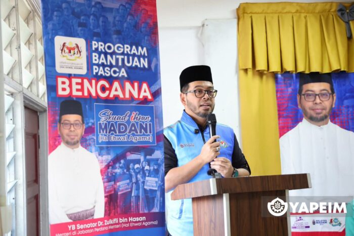 Kuantan, 23 Disember 2025 – Menteri Di Jabatan Perdana Menteri (Hal Ehwal Agama), YB Senator Dr. Zulkifli bin Hasan hari ini menyantuni komuniti di sekitar daerah Kuantan yang terjejas akibat banjir dengan menyampaikan bantuan keseluruhan berjumlah RM118,000 kepada 300 penerima manfaat.