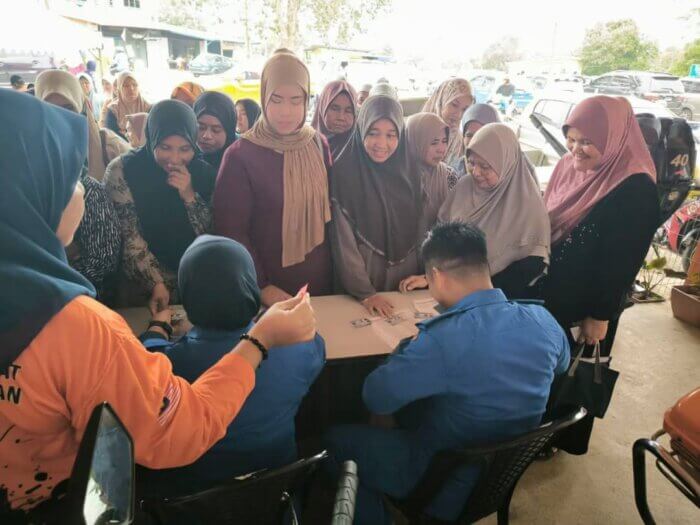Turut serta menyampaikan sumbangan LT. Kol (PA) Mohd Farid bin Ishak Timbalan Pengarah APM Negeri Kelantan, LT (PA) Mohd Rahimie bin Mat Lazin Pegawai Pertahanan Awam Unit Rantau Panjang dan LT. M Noorashikin binti Haron Timbalan Pegawai Pertahanan Awam Unit Rantau Panjang. Mengiringi beliau adalah En. Nik Mohd Nurul Ihsan bin Salleh, Pengurus YAPEIM Wilayah Timur dan Che Nor Azila binti Che Ghani, Pengurus YAPEIM Negeri Kelantan.