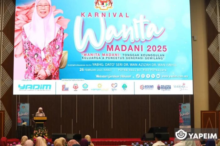YAPEIM berbesar hati menjadi sebahagian daripada Karnival Wanita MADANI 2025 yang berlangsung meriah di Putrajaya pada 26 Februari. Lebih 500 wanita dari pelbagai latar belakang hadir bagi memperkasa diri dalam aspek ekonomi, sosial, pendidikan dan kesihatan.