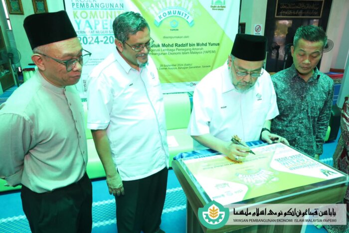 28 September 2024 – Yayasan Pembangunan Ekonomi Islam Malaysia (YAPEIM) lancar Projek Pembangunan Komuniti YAPEIM (PPKY) Negeri Sarawak di Asajaya, Samarahan hari ini sambil menyalurkan bantuan berjumlah RM140,000.