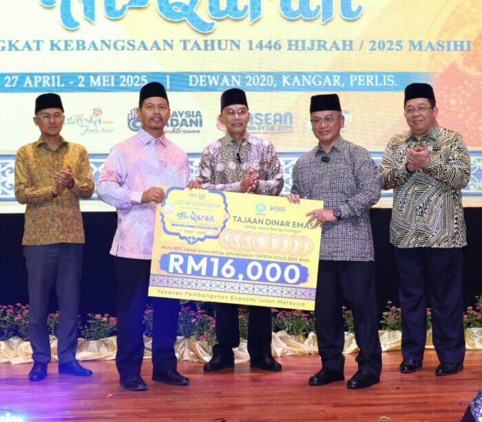 10 April 2025 – Yayasan Pembangunan Ekonomi Islam Malaysia (YAPEIM) menaja lapan keping Dinar Emas yang keseluruhan berjumlah RM16,000 kepada bakal johan setiap kategori di Majlis Tilawah dan Hafazan Al-Quran peringkat kebangsaan (MTHQK) tahun ini.