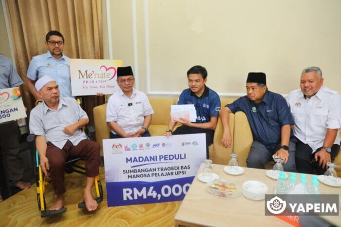 Sebagai tanda keprihatinan, YAPEIM menyalurkan sumbangan berjumlah RM45,000 di bawah Program YAPEIM Prihatin kepada semua mangsa kemalangan bas di Kilometer 53, Jalan Raya Timur-Barat (JRTB), Gerik, Perak pada 9 Jun lepas.